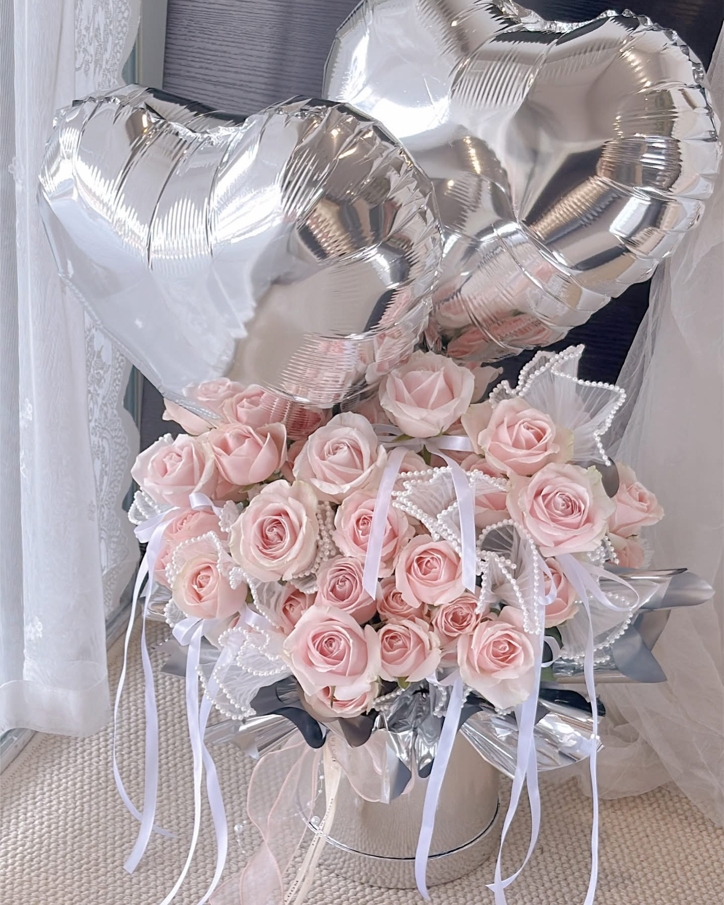 Feature flower: Avalanche Pink Roses imported flowers with Balloons
